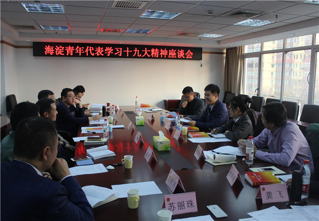 随后,与会青年代表就党的十九大精神以及如何结合本职工作深入学习贯彻党的十九大精神进行了热烈的讨论。区政协委员、北京禹冰水利勘测规划设计有限公司总经理吴震提到,党的十九大报告中提出了从现在到二〇二〇年,是全面建成小康社会决胜期,作为一名政协委员、青联委员,我深刻体会到脱贫攻坚任务的艰巨,要想真正从思想上、实际上帮助贫困群众走出困境,需要政府、企业和社会共同努力,从而实现高质量的全面小康社会。海淀青联委员、区人民检察院民事行政检察处处长夏鹏谈到,十九大报告的内容脚踏实地、着眼当下,过去几年在以习近平同志为核心的党中央的带领下,我们的党风政风越加清明,作为检察院新设职能部门民事行政检察处的一员,我相信我所从事的公益诉讼工作在未来将大有可为。海淀青联委员、天使百人会基金投资合伙人石岩磊表示,作为文化行业的从业者,我深刻体会到政府近两年“放管服”工作为文化创意行业所带来的前所未有的机遇与活力,为文化创新创造了巨大的空间。未来,我也将在在企业经营的同时,通过文化建设,为青年人树立更加坚定的信仰,让青年人有理想、有信念,并将以身作则带动示范身边的年轻人树立正确的价值观。青年代表、知合控股投资总监褚文博表示不忘初心,牢记使命,我们的党正是因为始终牢记带领人民群众谋幸福的使命,才能拥有旺盛持续的生命力,习近平总书记在报告中提出了社会主要矛盾的变化,我将带领企业顺应新时代的新变化,不断创新发展,为满足人民对美好生活的需求贡献自身力量。