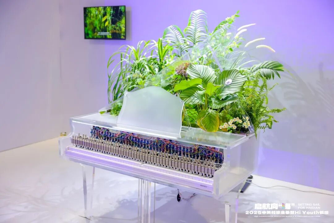 当植物化身灵动的钢琴演奏者,当机器拥有独特“面孔”,当未来语言在几何符号中诞生,当世界上最小最轻的微型飞行器展翅翱翔......“跨界・共生・未来”2025中关村毕业季大学生成果展・科技艺术融合展从6月24日开展至今,已吸引高校学生、海淀青联委员等社会各界青年8000余人踊跃参观。这场汇聚清华大学、北京交通大学、中央美术学院、北京航空航天大学等多所高校青年创作者先锋力量的展览,成为海淀夏日里极具创新活力的文化地标。