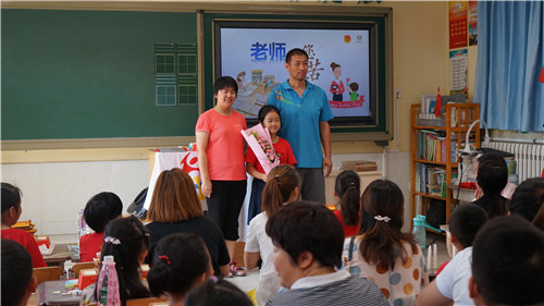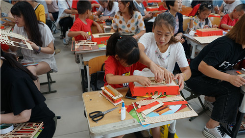 接下来,社工给大家下发了天安门的制作材料。天安门,1949年10月1日,中华人民共和国在这里举行开国大典,毛主席向全世界宣布:中华人民共和国中央人民政府在今天成立了!一想到这些材料很快就会变成庄严雄伟的天安门模型,大家激动不已,都迫不及待的打开包装。顿时,教室里就热闹起来了,孩子和家长们相互配合,按照安装说明有条不紊地进行着。有的家长说明步骤看不明白了,也会请教旁边的人,大家互帮互助。渐渐地,手中的天安门模型初具雏形。最后一步,在青年的引导下孩子和家长共同把“中华人民共和国万岁”、“世界人民大团结万岁”的标语和毛主席画像端端正正的粘贴好,天安门就制作好了。并且让孩子和家长们跟自己制作的天安门合影。并在活动结束后引导亲子之间相互沟通活动的分工,回顾整个活动。9月份还有一个重要的节日—教师节,大家值此活动之际,一起祝愿该班的老师段老师和赵老师教师节快乐,孩子们齐声道:老师,您辛苦啦!感恩老师们的辛勤培育。