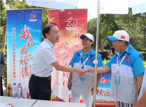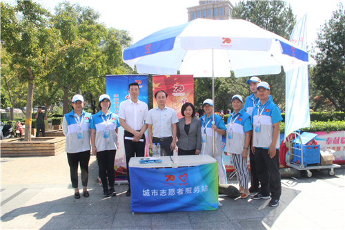 鲍雷书记一行亲切慰问枫蓝国际城市志愿服务站的志愿者们,详细询问日常志愿服务工作开展情况,高度肯定志愿者们坚守岗位、无私奉献的志愿服务精神,对他们为新中国成立70周年庆祝活动服务保障工作作出的贡献表示赞赏和感谢,希望大家通过参与志愿服务,提升自身素质,传递爱心力量。