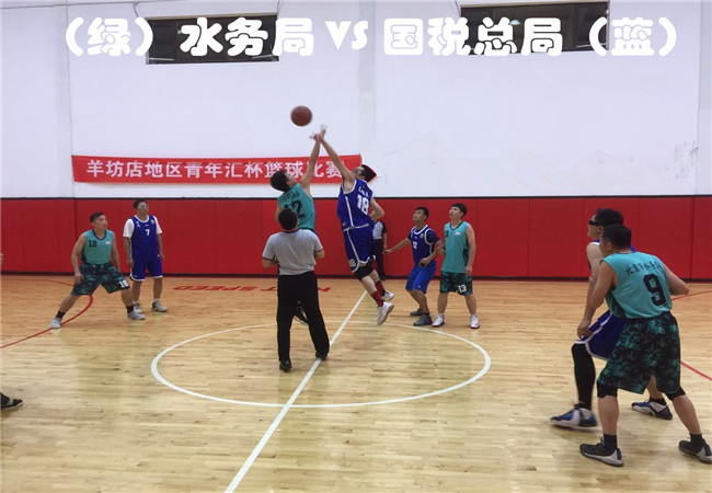 活动当天,社工先到盛今篮球馆布置场地,青年到场后统一签到。在签到期间社工对青年汇做了简要的介绍,并把本次活动流程安排和举办篮球赛的意义通报青年,随后社工组织青年进行赛前热身,防止青年拉伤韧带。18:30篮球比赛正式开始,第一场比赛是(蓝)北京铁路局VS翠微大厦(黄),蓝队青年首先发起猛攻,在领先12分后黄队喊暂停,估计是商量出行之有效的比赛策略,开场以后黄队18号球员勇猛进攻,在队员们的帮助下一点点把比分拉平,蓝队也毫不示弱,双方你进一球、我超一分,最终黄队以一分的优势赢得比赛。第二场比赛是(蓝)国税总局VS水务局(绿),为了给男同事们加油,水务局的女同事们组成啦啦队,为自己单位加油喝彩。蓝队一开始就势如破竹的领先绿队18分,但绿队毫不气垒,始终对蓝队的攻势严防死守,最终虽然输了,但他们打出了自己绝不放弃、拼搏奋进的团队精神。因前期准备充分,活动中社工有效维护现场秩序,活动圆满结束。