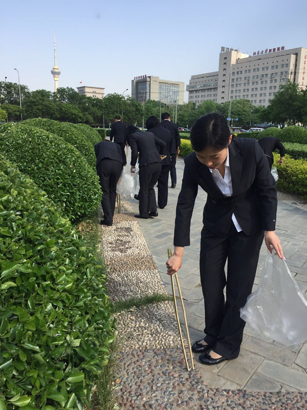 玉渊潭团委所属永兴花园饭店团支部开展“城市清洁日”服务活动